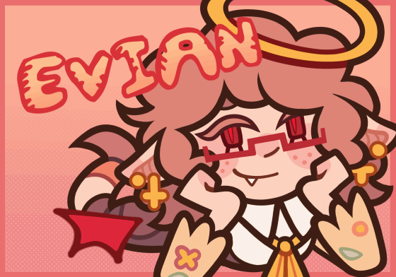 hey there!!! my name is evian (aaaaalso known as aether!) and im a silly fella who loves to try new things! this website is mostly just a hub for me to share my thoughts, feelings and my creations whenever i feel like it!! im very VERY new to coding, so much of what im doing around here is the result of a LOT of trial and error... do you know how hard i had to work to get this background to move??? actually insane. my brain hurt so bad after that one, and it wasnt even that difficult to do .... anyway, i plan one day to use this website as a hub for a future webcomic, but for the moment, its for everything to do about me and my creations!! ![]() gender: